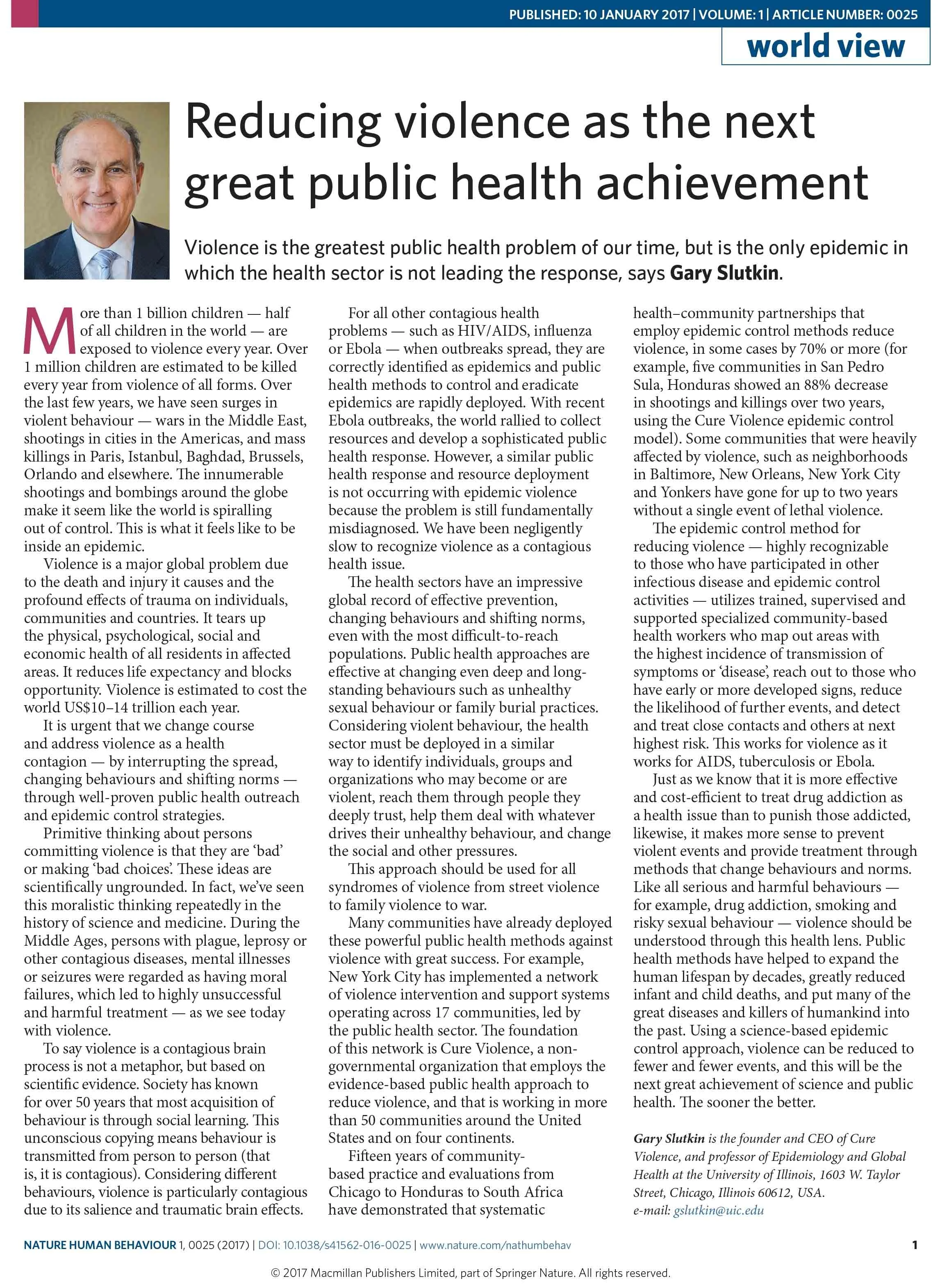 “It is now scientifically clear that violence behaves like a contagious and epidemic disease.”