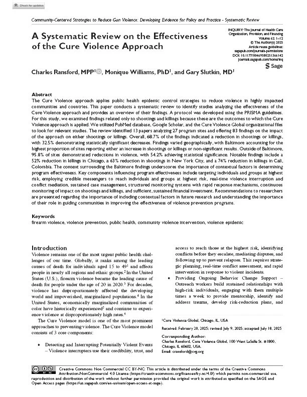 Violence meets the definition of a contagious disease.